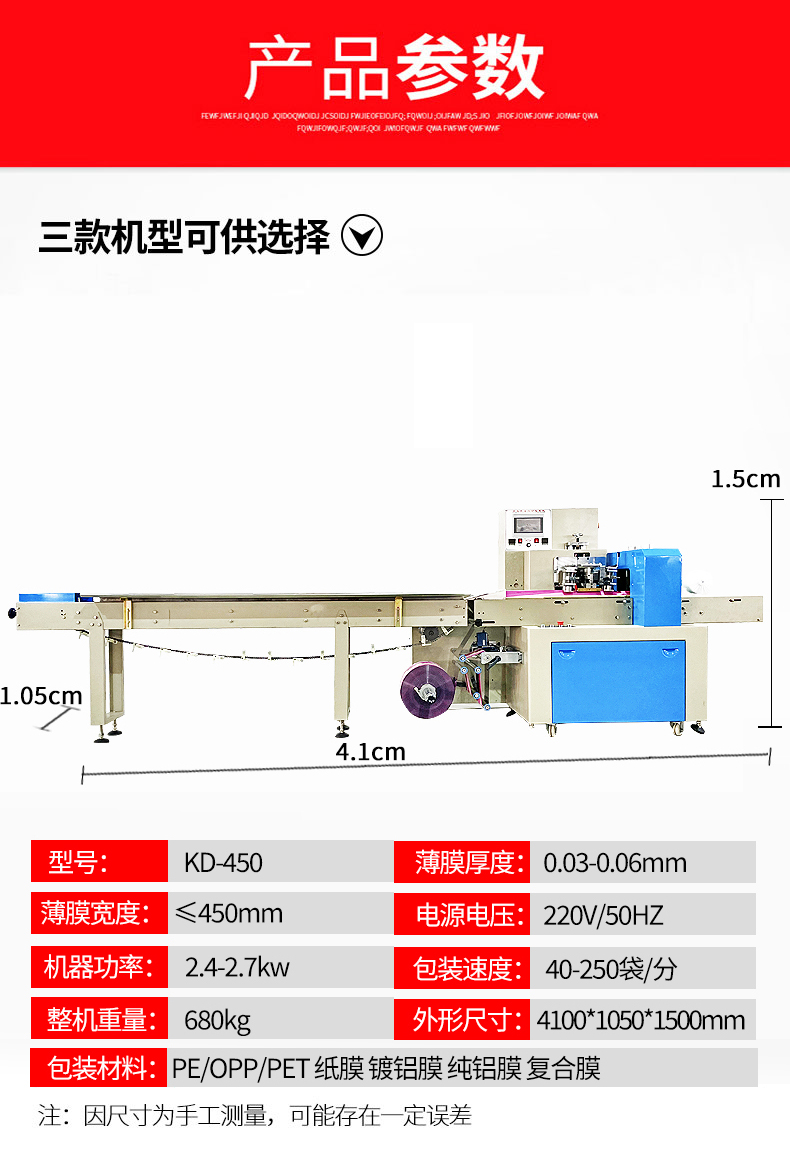 KD-450型下走紙枕式包裝機